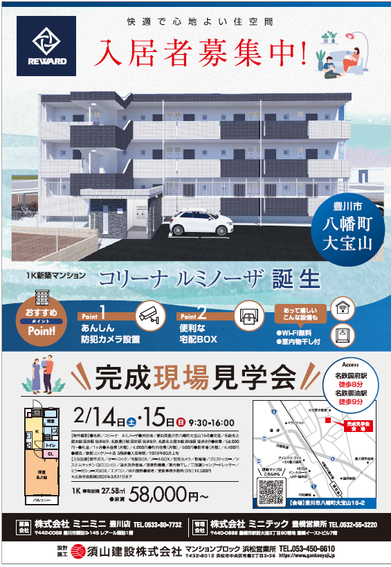 2月14・15日 豊川市「コリーナ ルミノーザ」 新築完成現場見学会のお知らせ